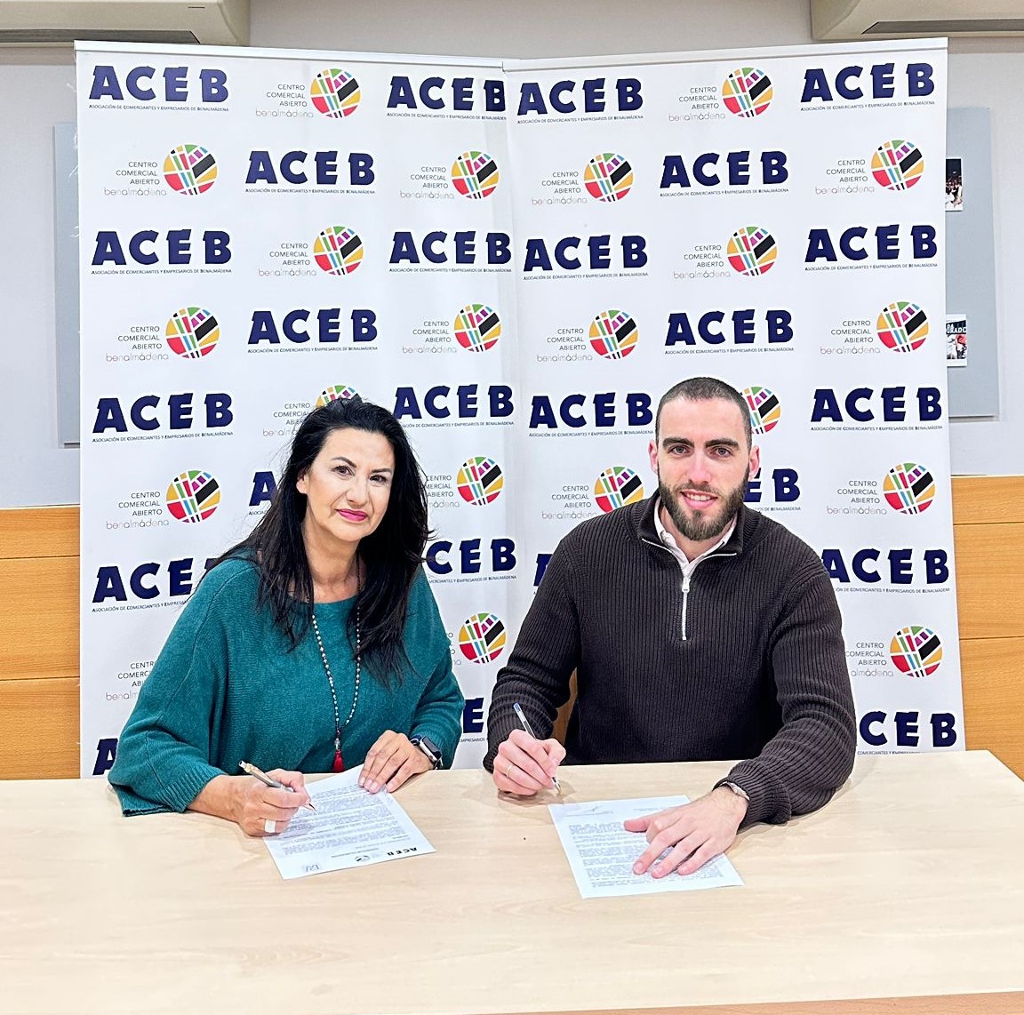 La presidenta de ACEB y vicepresidenta de ACCAB, Rosa María González Rubia, ha firmado el acuerdo con el responsable de la empresa Peralta Works, Eduardo Peralta.